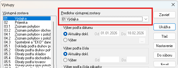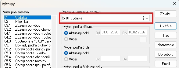 Po rozbalení zoznamu predlôh výstupných zostáv vyberte predlohu, ktorá najlepšie vyhovuje vašim požiadavkám. Obvykle má aj rovnaký alebo podobný názov, avšak bez písmena „S“ na začiatku.