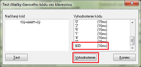 - Riadiaci znak pre Suffix: Enter ($0D)