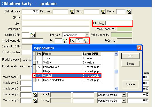 Upozornenie:Pri nedodržaní uvedeného nastavenia a postupu pri práci so skladovými kartami označenými ako "lieh - _A", evidencia liehu nie je správna a výstupné zostavy nemusia vykazovať správne hodnoty.