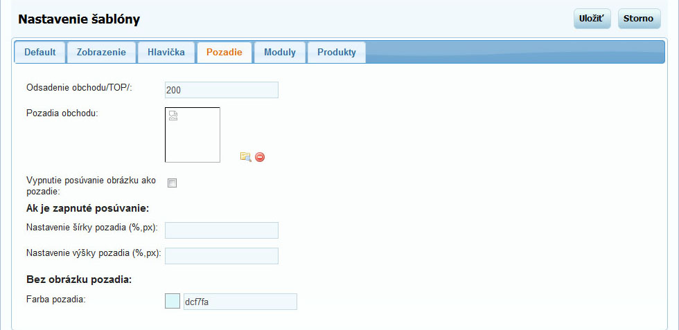 Vzhľad Vášho internetového obchodu MRP je možné jednoducho modifikovať. Nástroj pre modifikáciu sa nachádza v časti: "Nastavenie/Šablóny/Nastavenie".